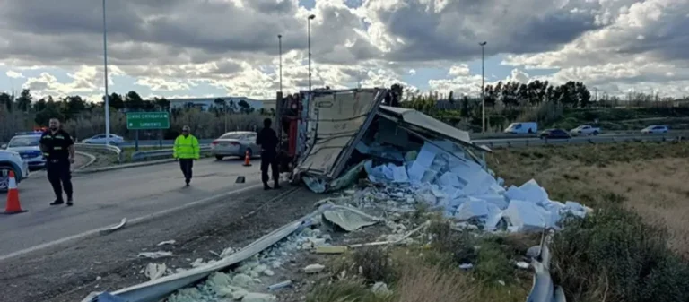 El pasado tarde del miércoles se vio alterada por el vuelco de un camión de gran porte en la rotonda que