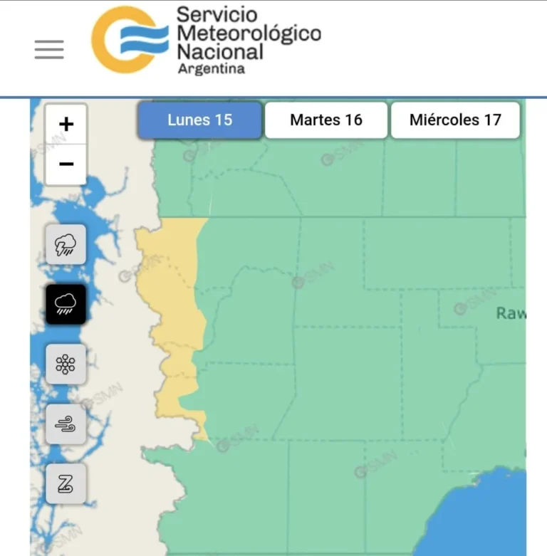 Según información oficial del Servicio Meteorológico Nacional (SMN), algunas zonas de la provincia del Chubut podrían tener episodios de lluvia intensa
