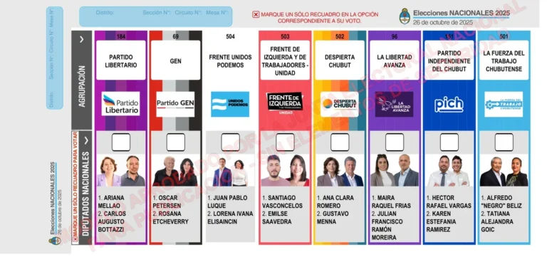 La Justicia Electoral Federal oficializó este miércoles el diseño de la Boleta Única de Papel (BUP) que se usará en Chubut